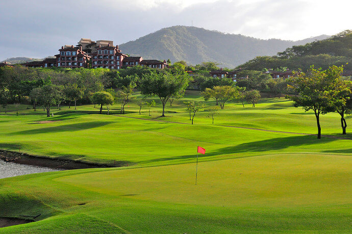 This is a fantastic golf course set within the grounds of the luxurious JW Marriott Hotel in Hacienda Pinilla. A tranquil 40-minute drive from Casa Serena, Hacienda Pinilla Golf is very challenging, but at the same time forgiving course that was designed by Mike Young and opened in 2001. Two of the holes finish at the oceanfront, making this a unique and unforgettable experience to enjoy. The course is long and golfers of all levels can play without any problems. The fairways and greens are very well kept and you will be amazed at the beautiful houses that have been built alongside the greens. The trees and tropical plants that you will see throughout your round will make you realize how beautiful Costa Rica really is, as the views and gardens are simply unbelievable.